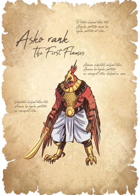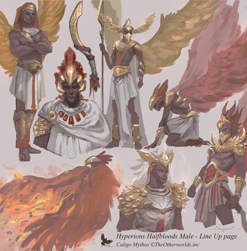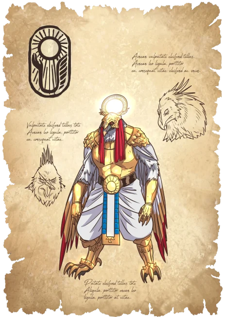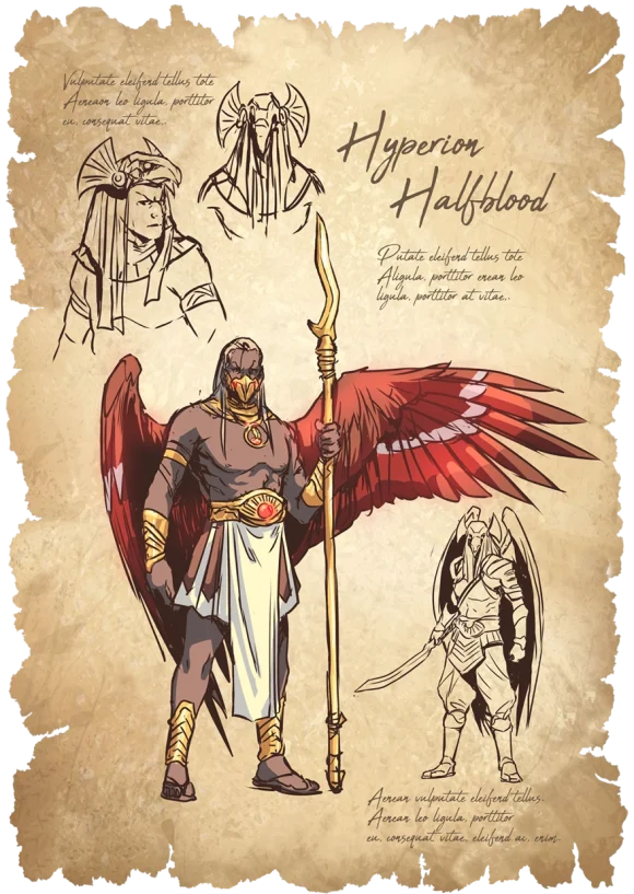 Fierce in both warfare and diplomacy, they wield influence across all territories, unhesitatingly asserting their authority and showcasing their might. Their culture and history are rooted in mystery, notably their ancient coexistence with a now vanished race, the Ainul. Their religious narratives recount their genesis during the Great Dying following the Solara Cretana Event, emerging from the ashes and embers that filled the heavens. Descending to the Gilded Deserts, by riding inside the rays of sunlight that struggled to warm the Earth during those harsh and unforgiving times. Once the first Hyperion rooted the lands, the second breathed and bore the Egg of Simorgh, an ancestor of the modern Phoenix.